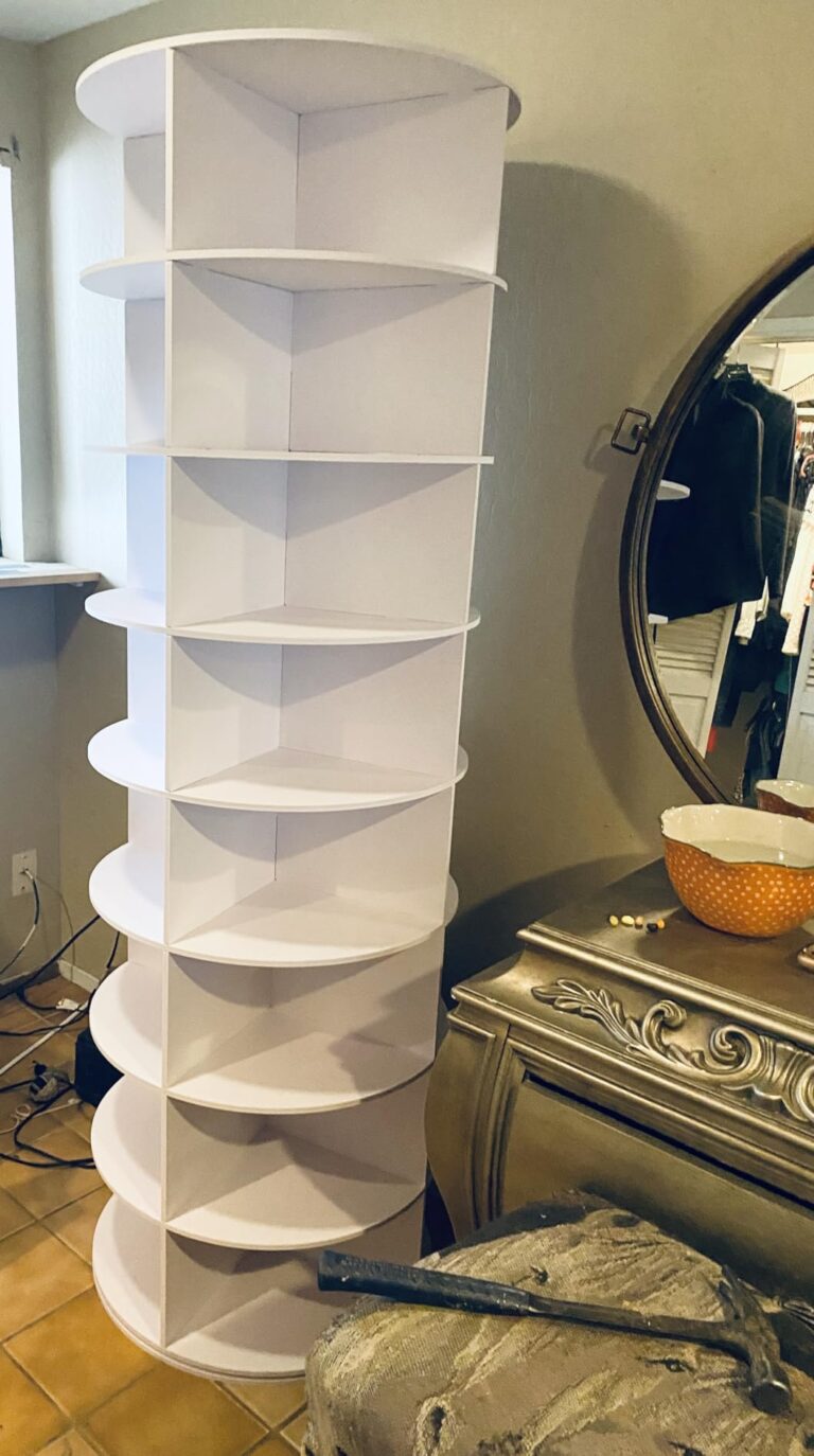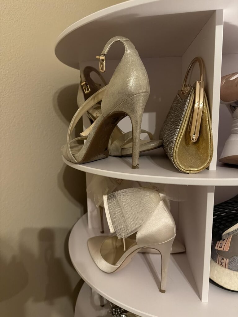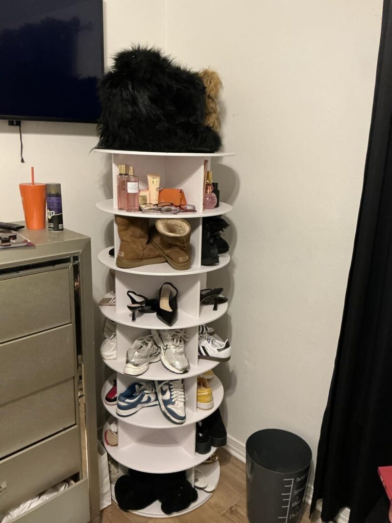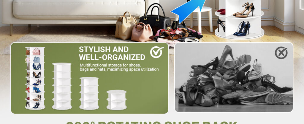 The rotating display tower that organizes 28+ shoes & bags in one small corner — and makes your room look like a showroom.